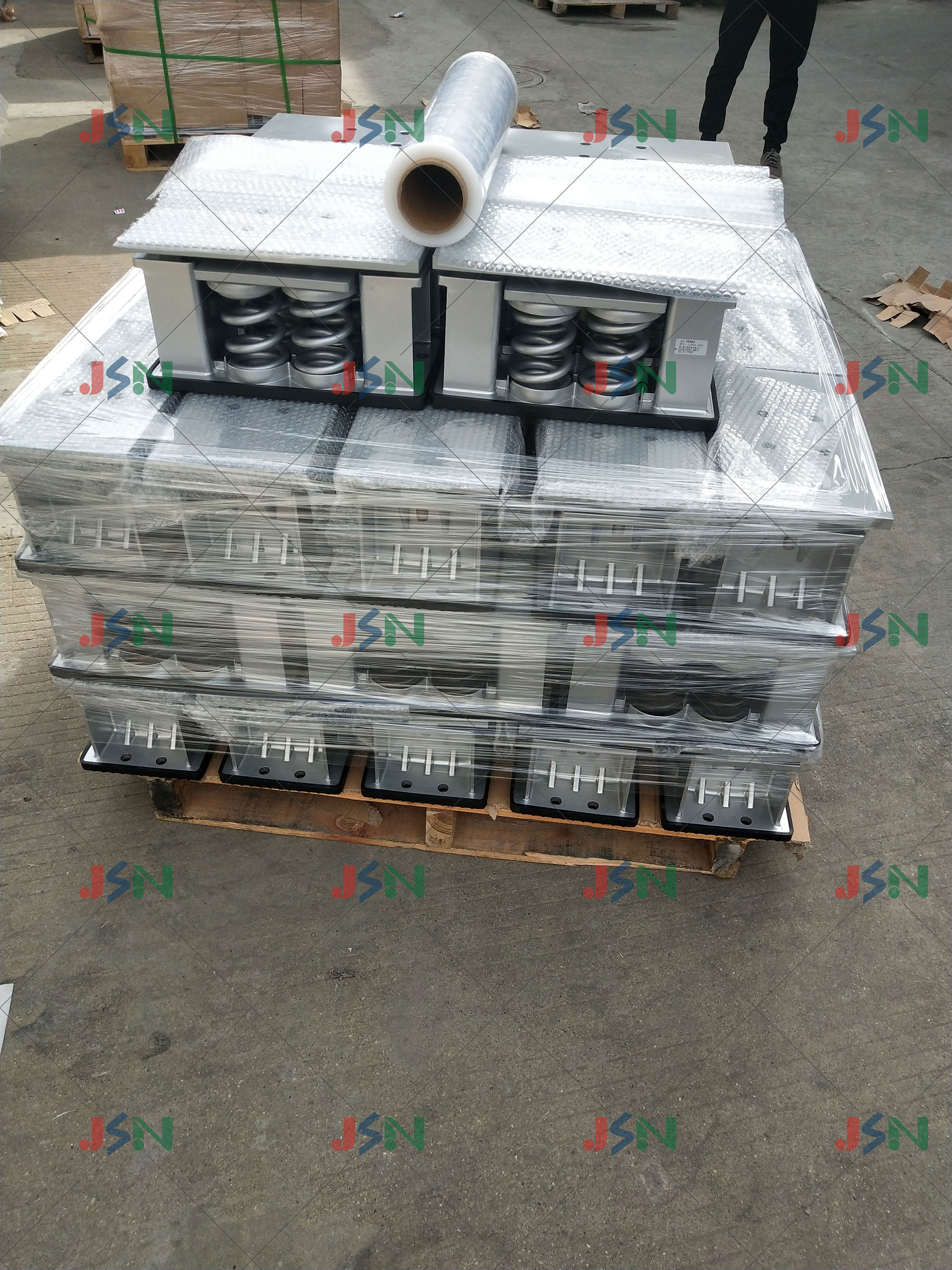 項(xiàng)目現(xiàn)場(chǎng)需要56臺(tái)減震臺(tái)座,高度最高的為500mm,項(xiàng)目工期特別緊張,要求一周內(nèi)交貨,JSN主要負(fù)責(zé)減震臺(tái)座框架和材料的提供(包括鋼筋),成品現(xiàn)場(chǎng)澆灌,通過(guò)保證質(zhì)量努力趕工,6天就順利完成交貨(將近20噸的原材料),得到項(xiàng)目方的一致好評(píng),在工程項(xiàng)目中交貨即使晚一天,對(duì)現(xiàn)場(chǎng)的成本會(huì)造成特別大的損失,選擇JSN金諾品牌減振器,80%以上的產(chǎn)品均為現(xiàn)貨供應(yīng),這次臺(tái)座配套的JA型阻尼彈簧減振器,均為現(xiàn)貨供應(yīng)。
