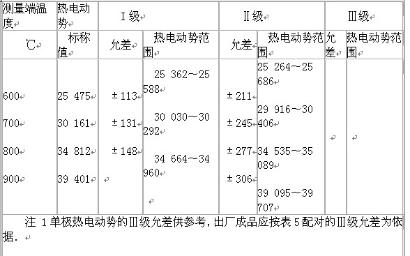 2經(jīng)供需雙方協(xié)議,并在訂貨合同中注明,允許正負(fù)極配對(duì)供貨,配對(duì)熱電動(dòng)勢(shì)及允差應(yīng)符合表5規(guī)定。