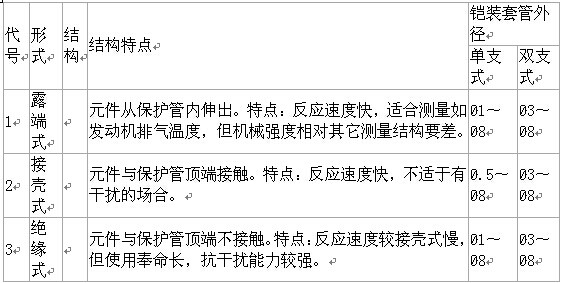 鎧裝式熱電偶具有測量溫度范圍大、反應速度快,動態(tài)誤差小、可彎曲安裝,機械強度高,耐壓性能好等特點。鎧裝式熱電偶一般可以測量0~1300℃范圍內(nèi)的氣體、液體和蒸汽及固體表面或內(nèi)部溫度。鎧裝式熱電偶可以配套數(shù)字儀表、記錄調(diào)節(jié)儀表、PLC、數(shù)據(jù)采集器或計算機使用,作為新一代的溫度傳感器,它可廣泛用于冶金、石油、化工、電力、輕工、紡織、食品、國防及科研等各部門。