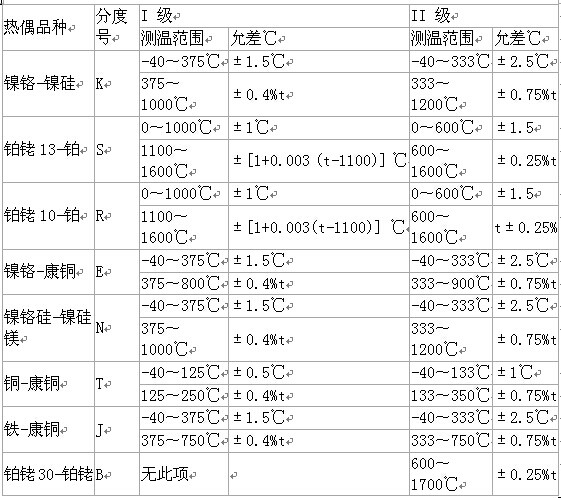 熱電偶測溫范圍及允差熱電偶測溫范圍及允差