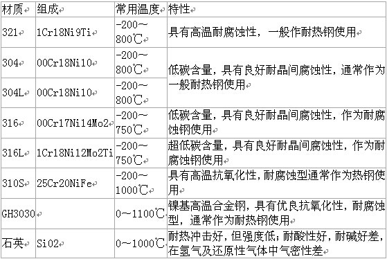 熱電偶保護管材質(zhì)及常用溫度范圍