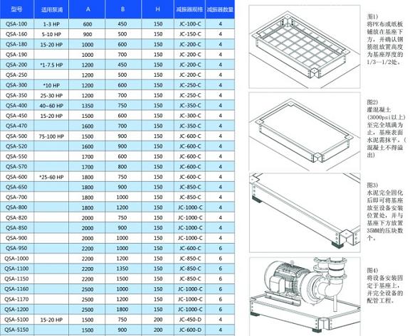 QSA型基座,設(shè)計(jì)有水平調(diào)整螺栓,泵浦按裝后只須調(diào)整水平螺栓,不須以調(diào)整 |