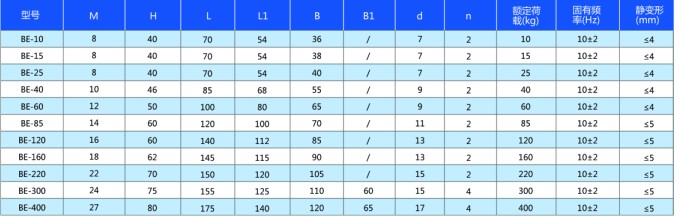 BE系列低頻復(fù)合橡膠減振器技術(shù)參數(shù)及外形尺寸表