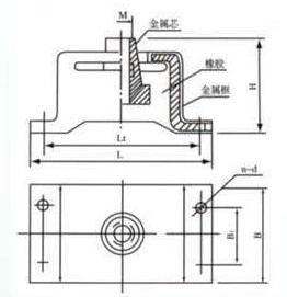 BE型低頻復(fù)合橡膠減振器由金屬與橡膠復(fù)合制成,金屬表面全部包復(fù)橡膠,能防止金屬銹蝕,產(chǎn)品固有頻率低,阻尼比適宜,橫向剛度高于垂向剛度,適用平置,倒置及側(cè)掛等多種安裝形式.平置使用時(shí),橫向穩(wěn)定性好.當(dāng)承受較大沖擊時(shí),可自動(dòng)限位保護(hù),同時(shí)對(duì)共振峰的抵制能力很強(qiáng),對(duì)瞬態(tài)沖擊響應(yīng)瞬時(shí)過(guò)度工況等引起的自振能迅速消失,設(shè)備不致出現(xiàn)任何晃動(dòng).該產(chǎn)品在較寬的干擾頻率范圍內(nèi)有相當(dāng)明顯的隔振效果,能適用于各類(lèi)陸地,船用機(jī)械設(shè)備,如柴油機(jī)、風(fēng)機(jī)、水泵、空壓機(jī)、空調(diào)機(jī)、精密儀器儀表等中小型機(jī)械設(shè)備的隔振.對(duì)有水平擾力的機(jī)械設(shè)備,使用本隔振器能取得良好的隔振效果。 BE型橡膠減振器示意圖